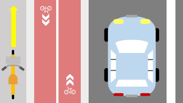 自転車道があるとき、自転車はここを走行しなければならず、歩道を走行することはできません。
